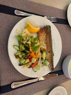 Frischen Fisch und leckere Salate.