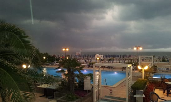 28° Pool mit Strand bei Unwetter
