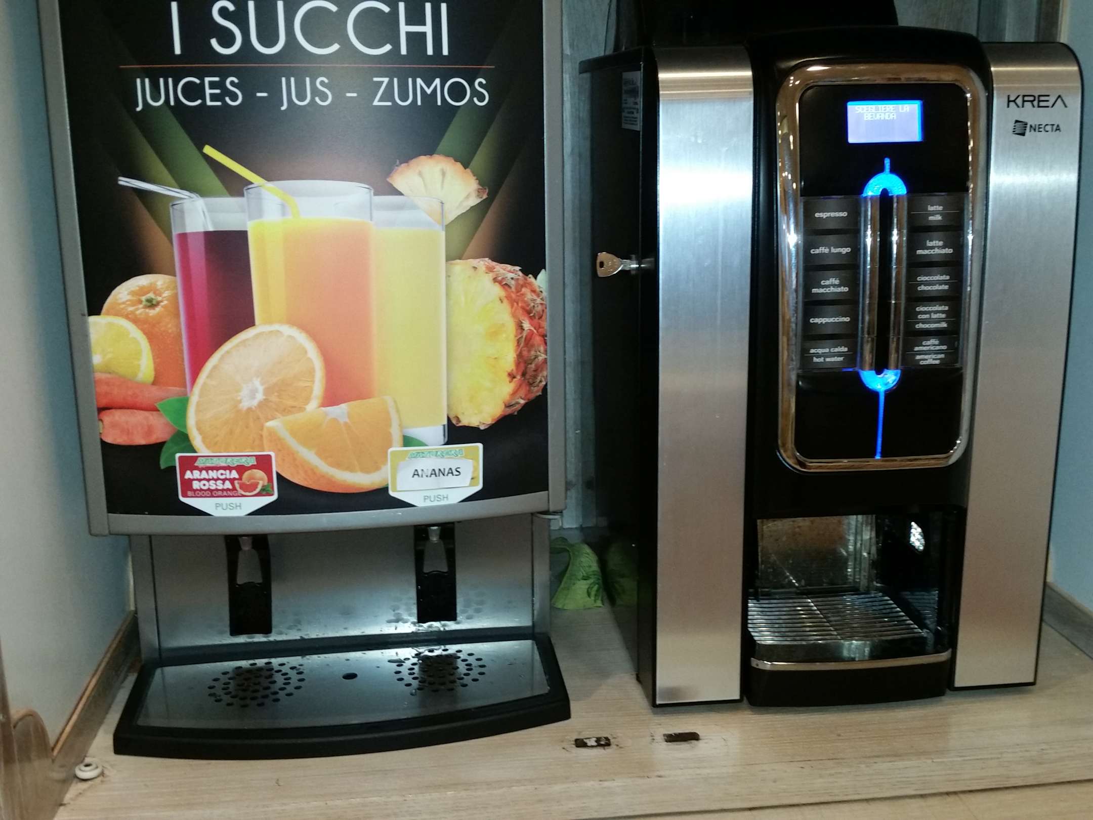 Orangensaftautomat und Kaffeeautomat beim Frühstück!