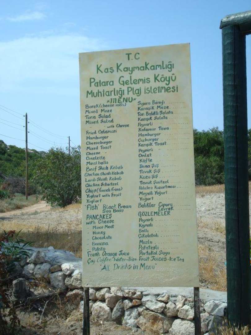 Speisekarte der Strandbar