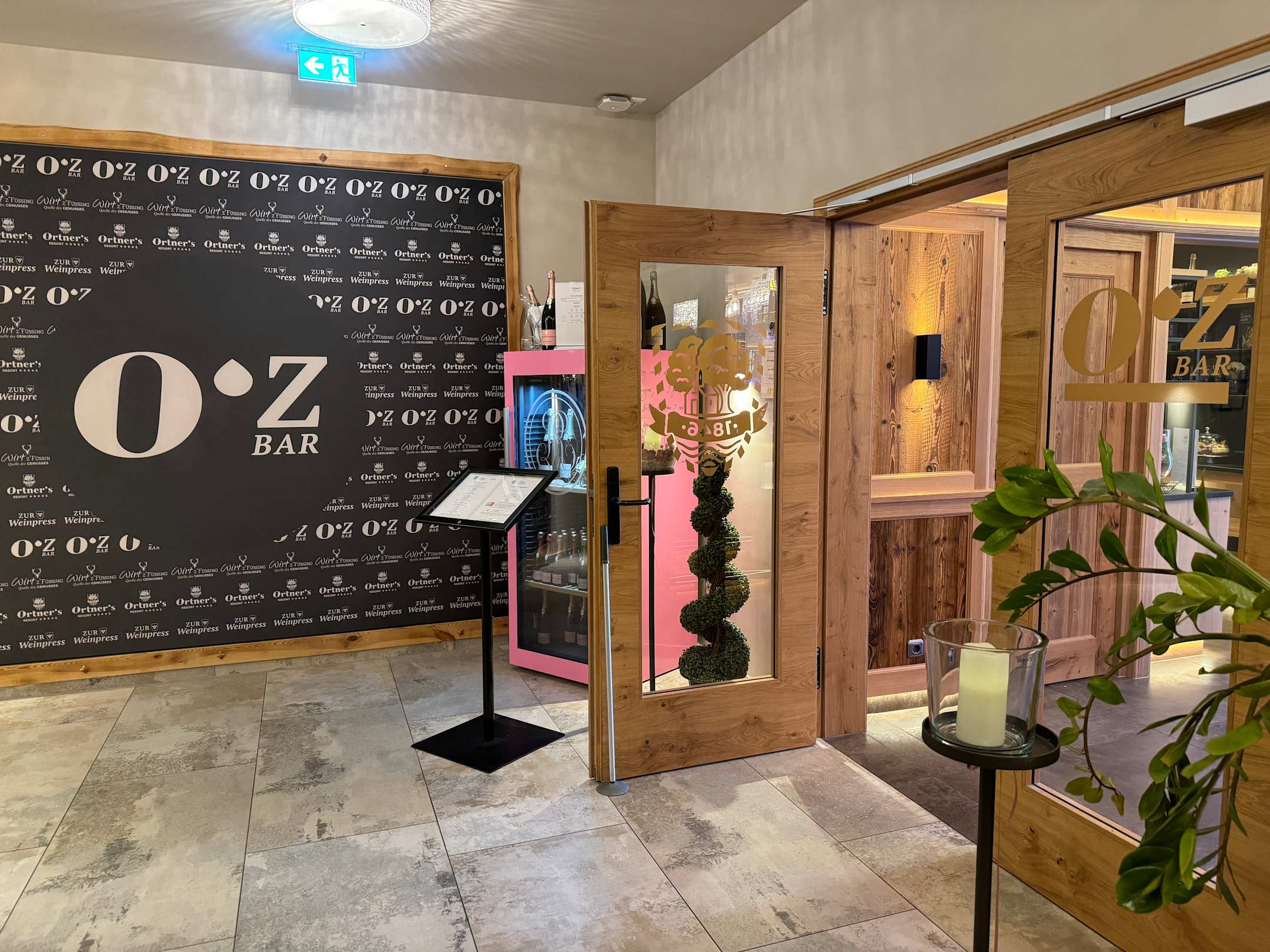 Eingang zu Restaurant, Bar und Aussenterrasse.