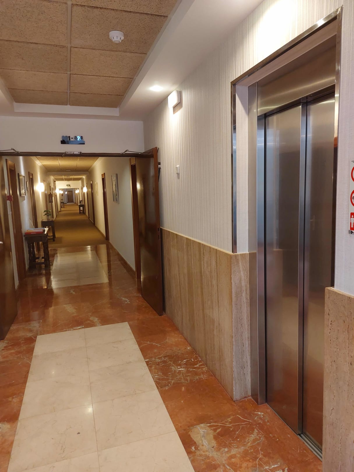 LobbyEin langer Flur, Aufzug rechts