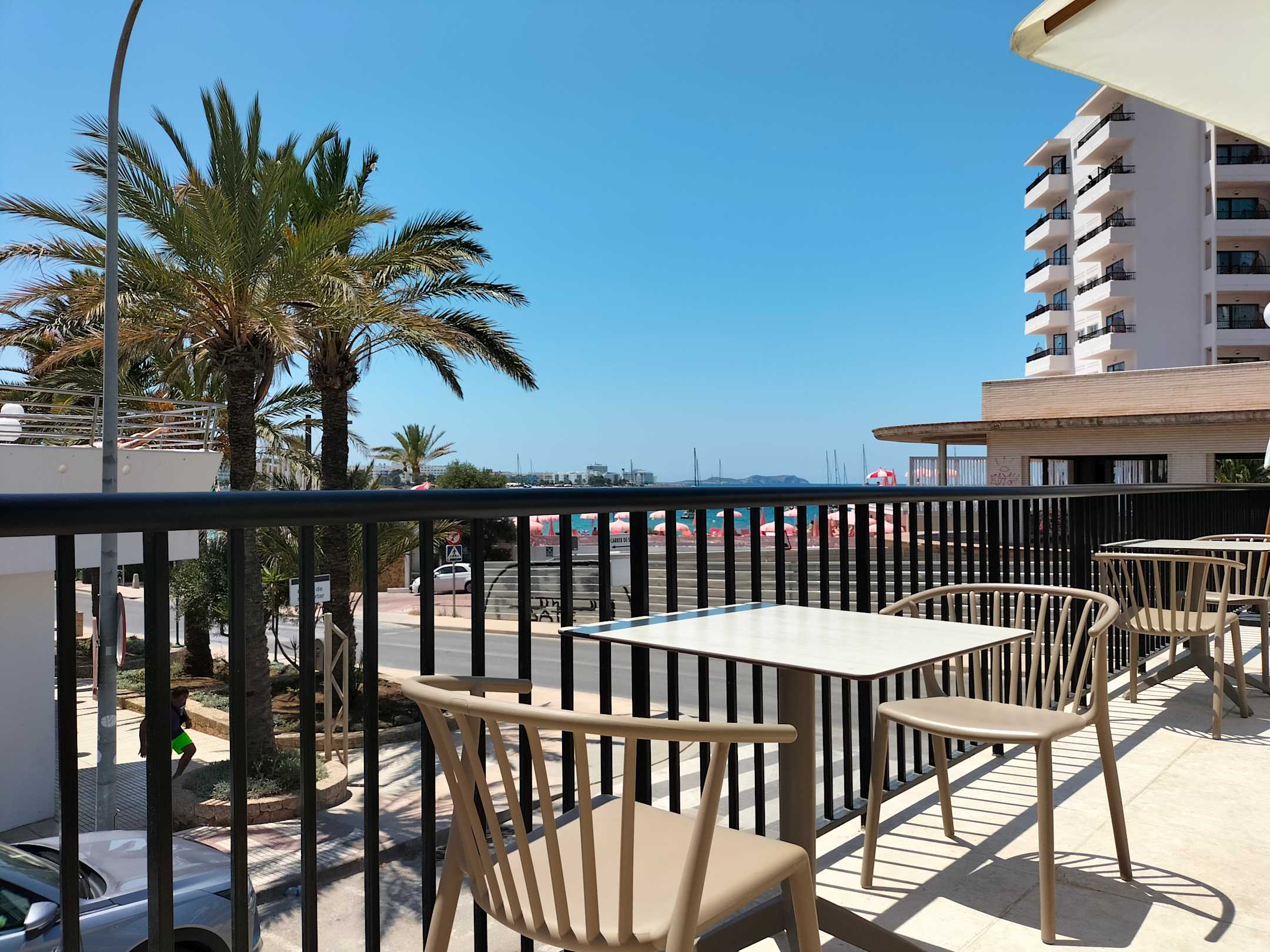 Blick von der Hotel/ Poolterrasse über die Straße zum Meer.