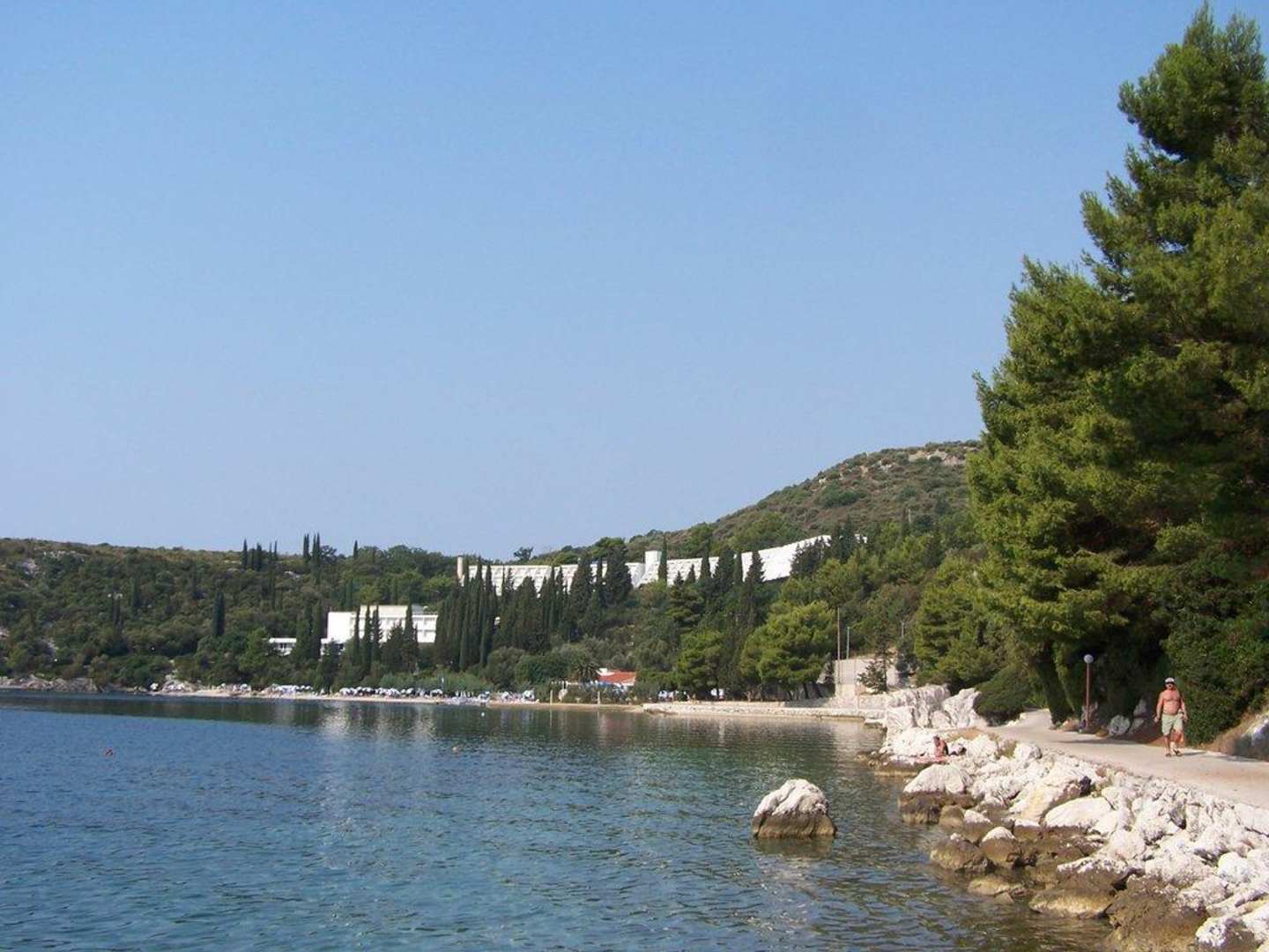 Blick von der Promenade nach Slano zurück auf das Hotel mit Bucht von Slano