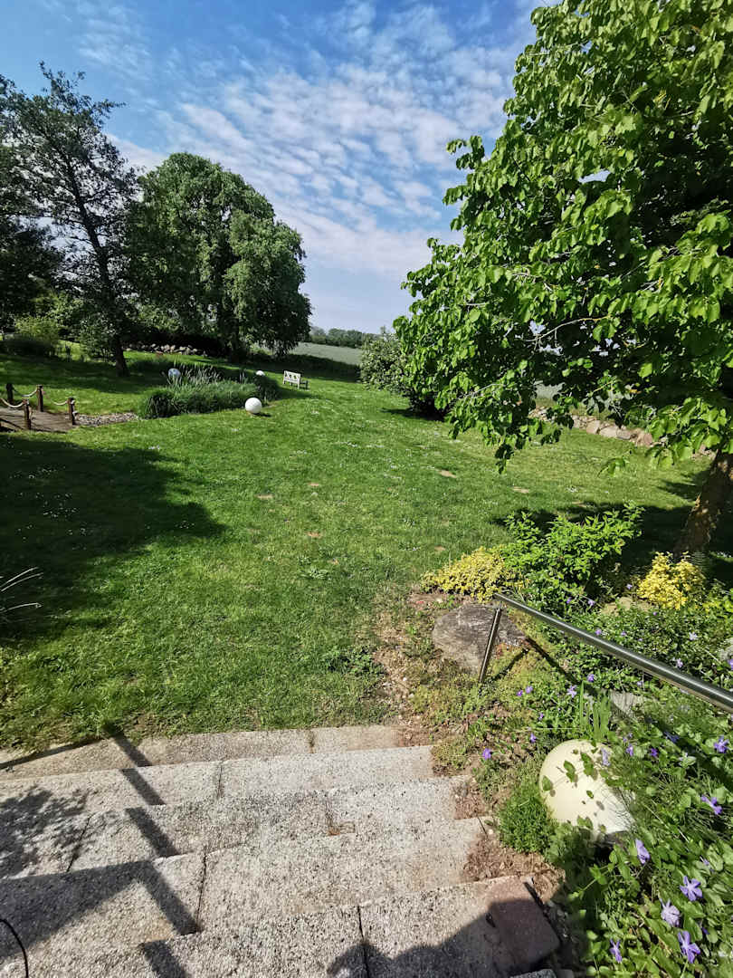Treppe runter von der Terasse in den Park