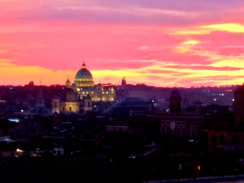 Dachterrasse abends mit Blick auf den Petersdom