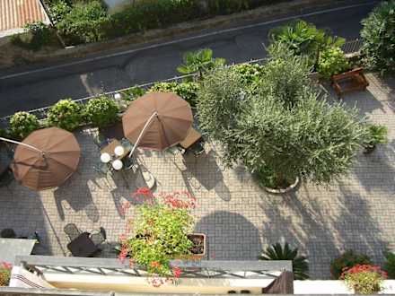 Ausblick vom Balkon auf die Terrasse