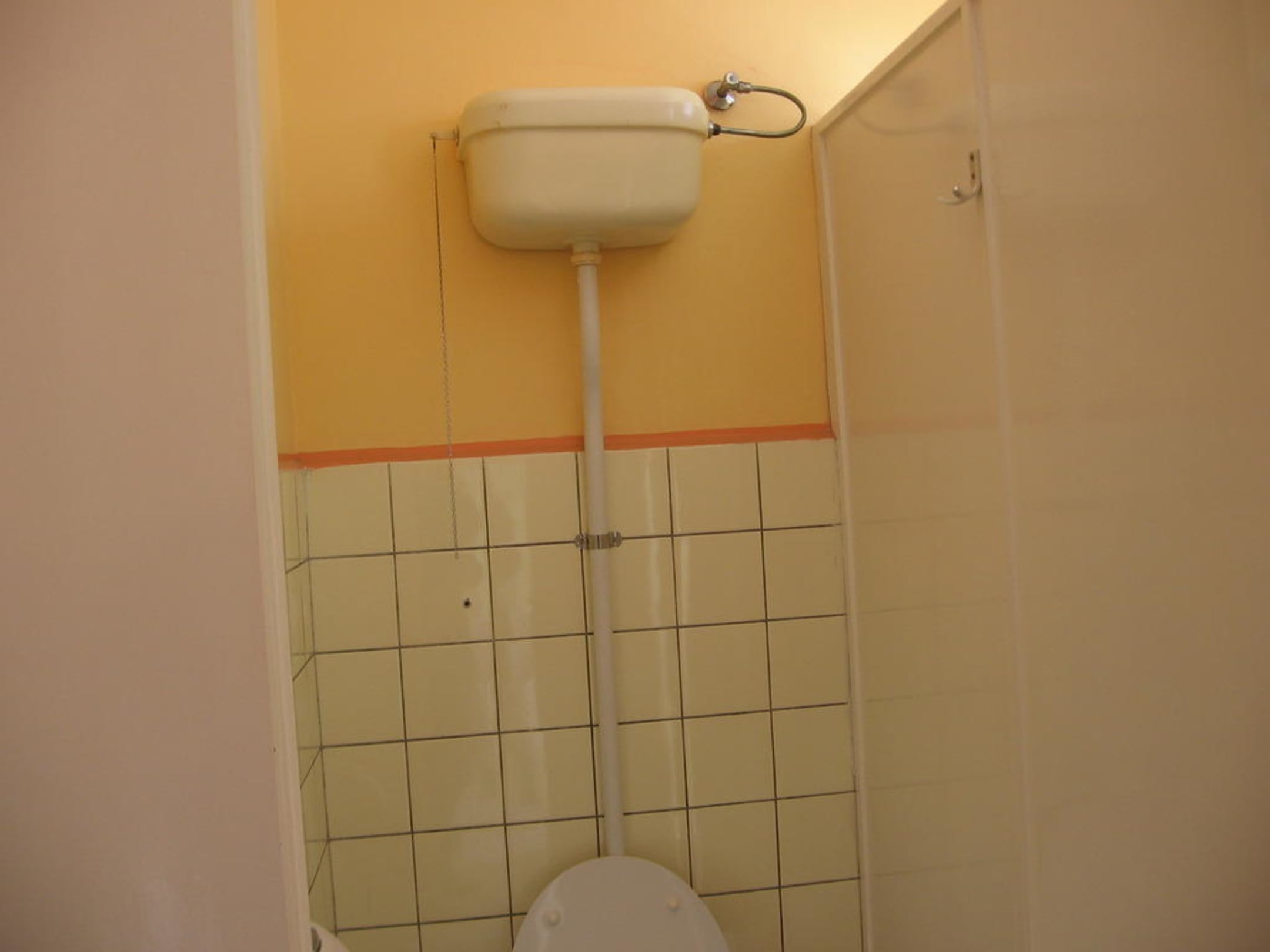 Toilettetoilette mit drei kabinen wie ich sie das letzte mal in meiner grunschule vor der ersten renovierung gesehen habe