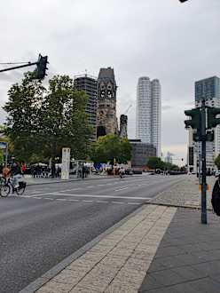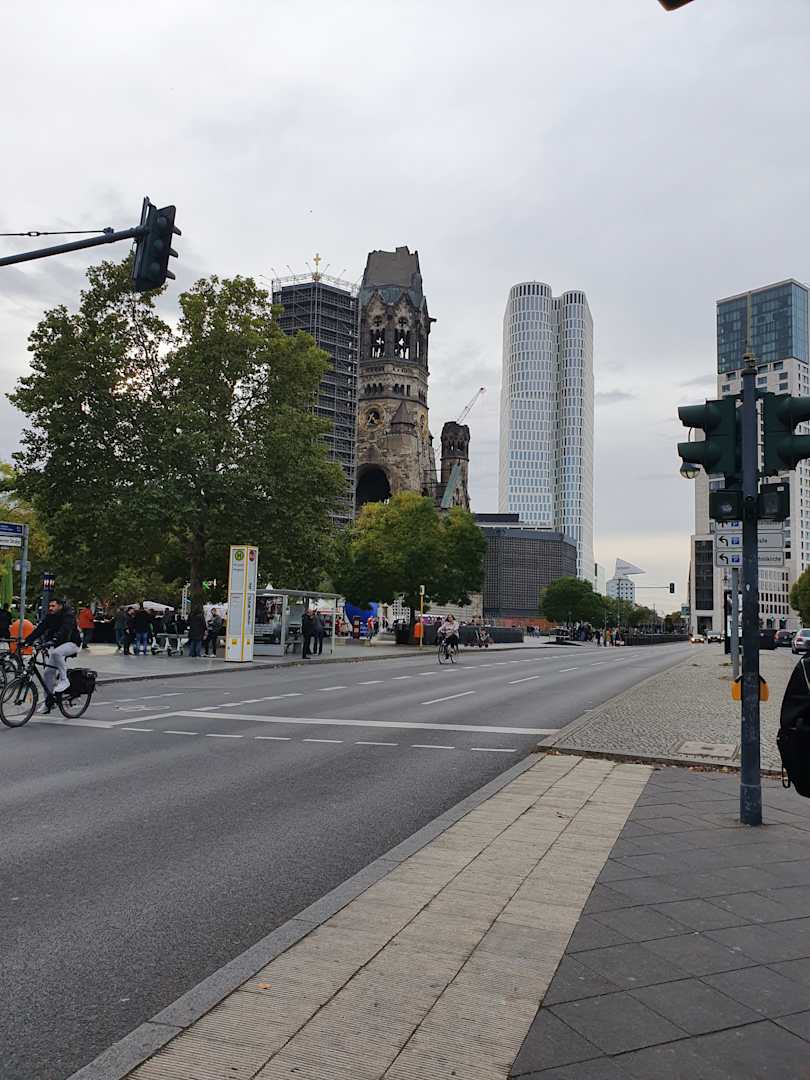 Die Gedächtniskirche gleich beim Hotel . Hintendran beginnt der Kurfürstendamm.