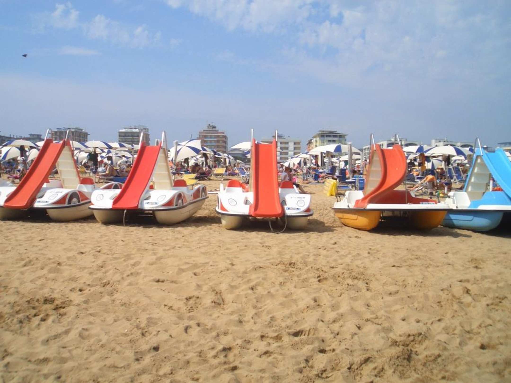 Blick vom Meer zu den Hotels am Strand.