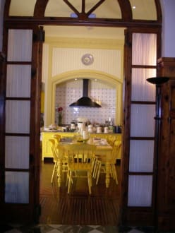 Blick in die Gästeküchein der einladenden Gästeküche gab es nachmittags köstlichen Tee oder Kaffee mit Biskuits und Kuchen.