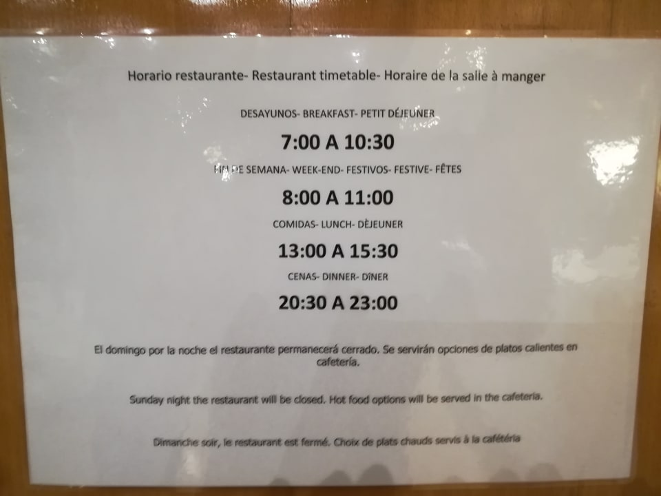 Restaurantzeiten mit dem Hinweis, Sonntag geschlossen.