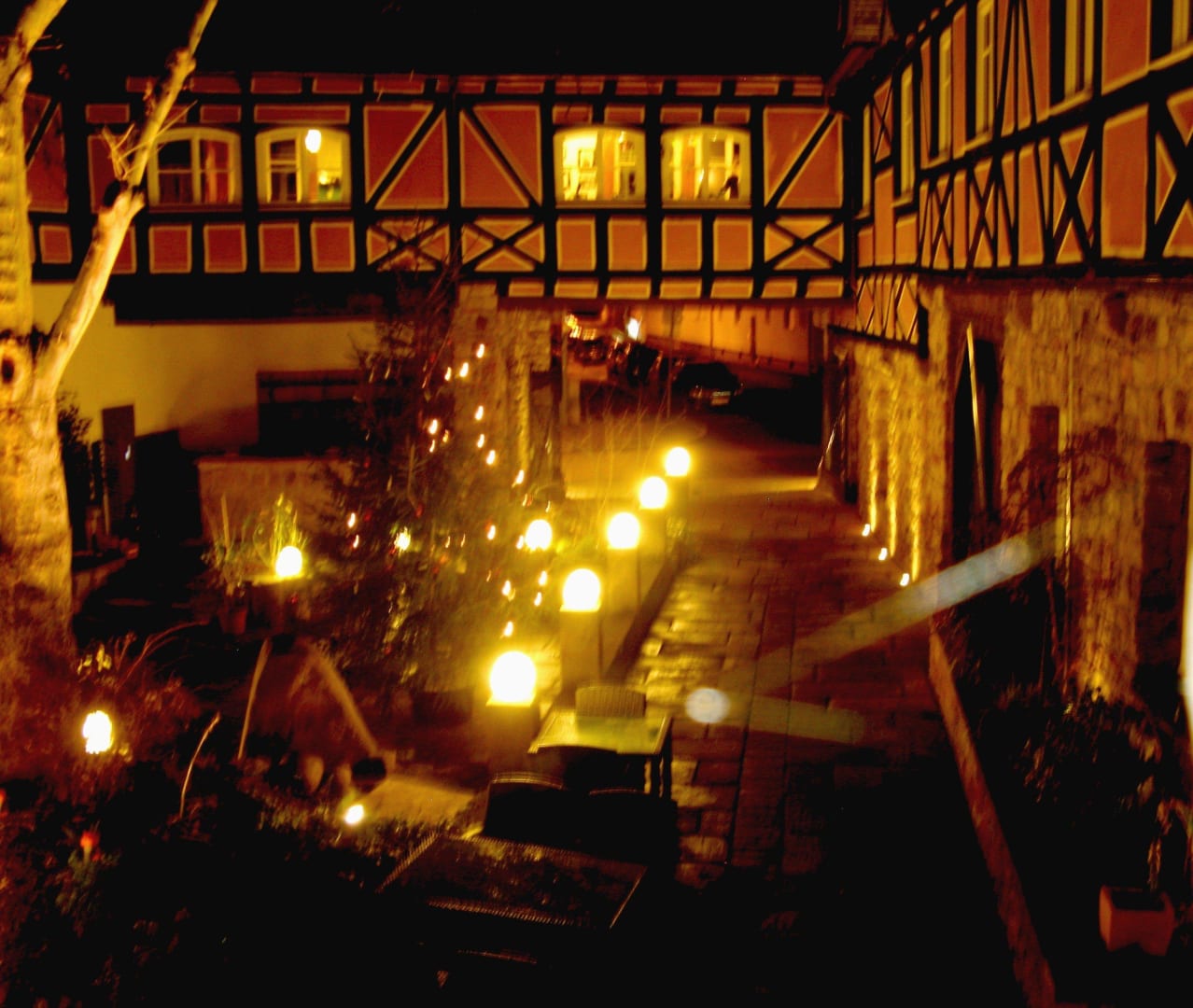 (Blick vom geräumigen Balkon in den Innenhof der Hotels)