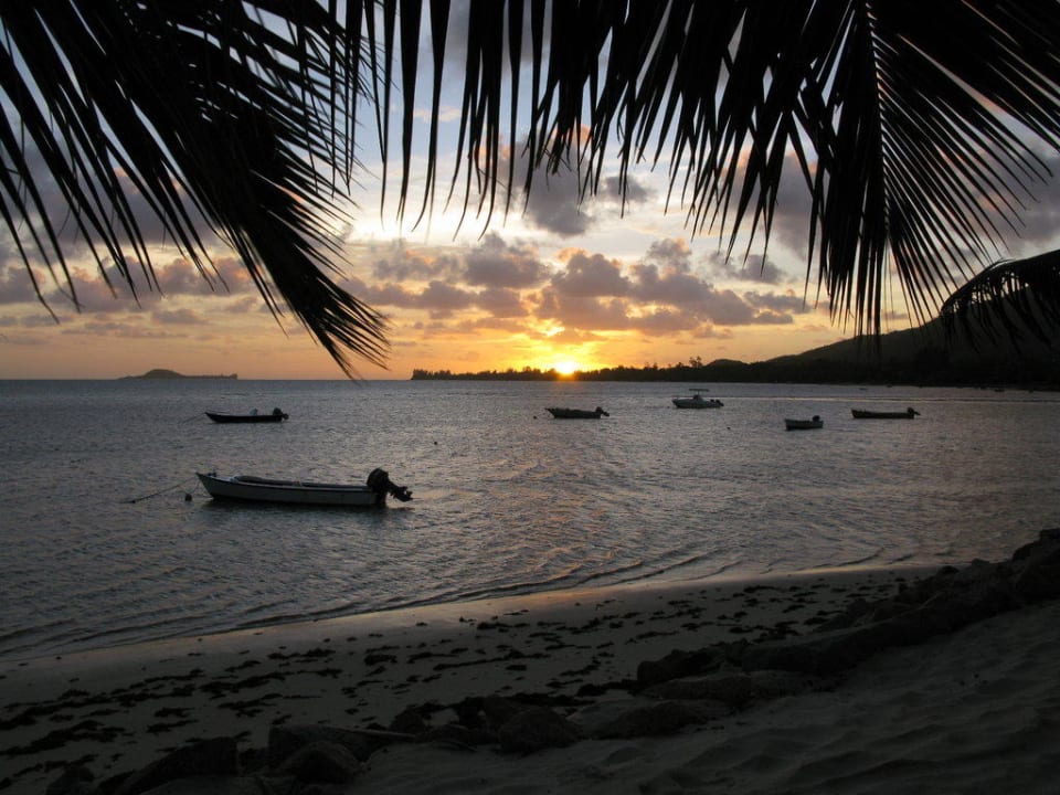 Sonnenuntergang am Strand vor dem Hotel