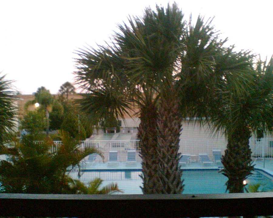Blick vom Balkon/Veranda auf den Pool