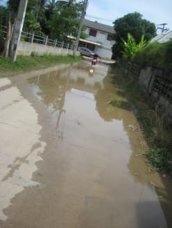 Nebenstraße zum Palm Point steht unter Wasseralso einfach durch die Nachbargärten. Dann bleiben auch die Füße trocken :)