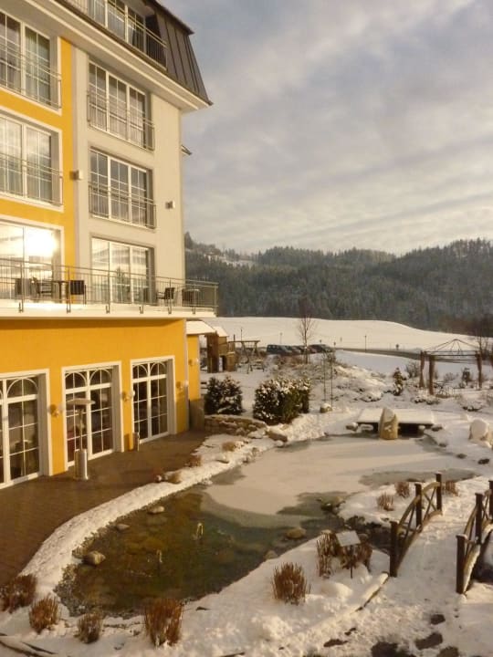 Im Hintergrund der Spielplatzbereich
