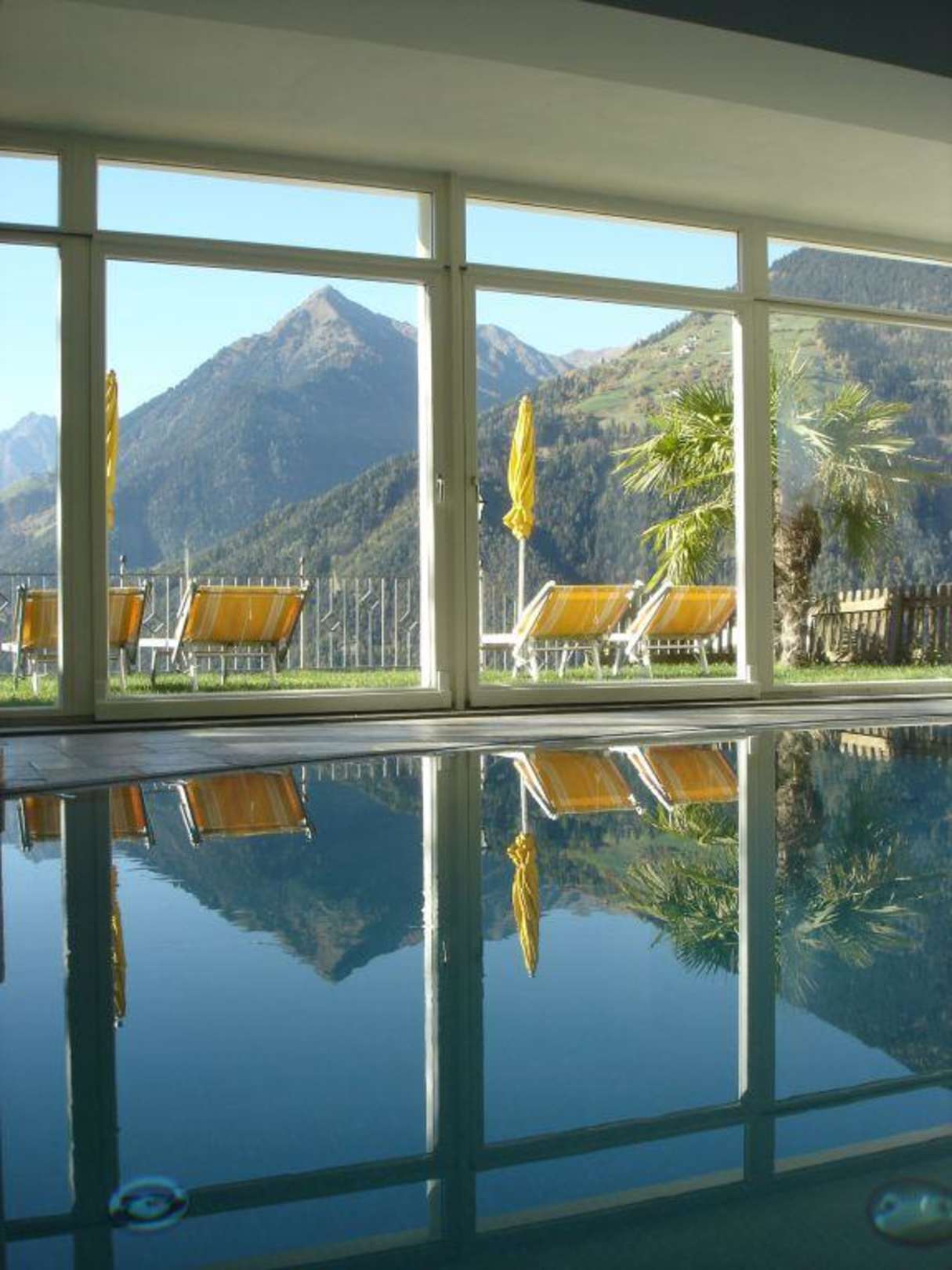 Indoor-Pool mit Ausblick auf die Bergwelt
