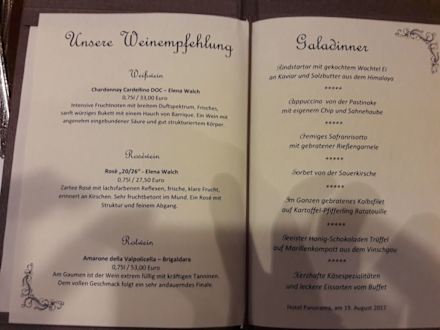 Speisekarte für das Galadinner