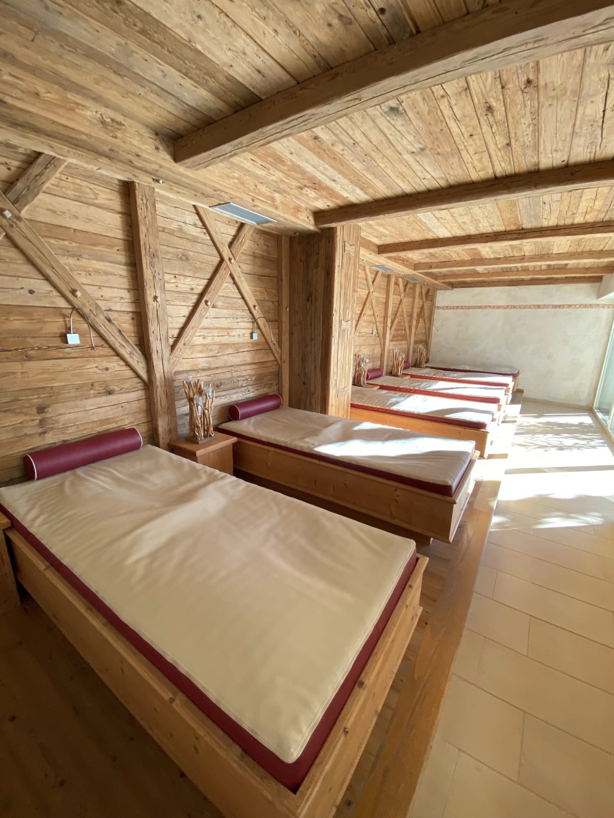 Ruhebereich für die Saunen (Wasserbetten).