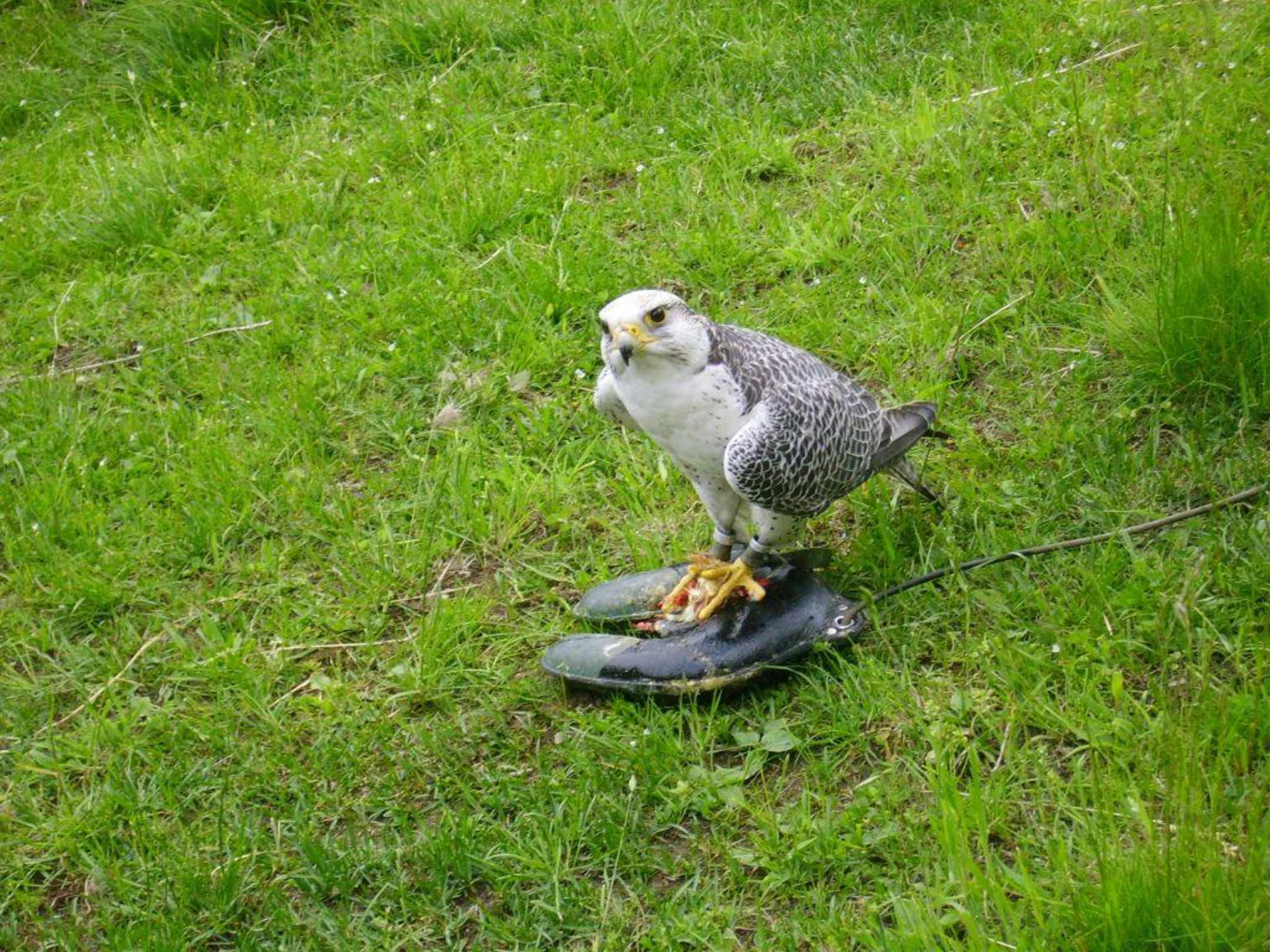 das Bild zeigt den Falken Finko bei der Flugvorführung