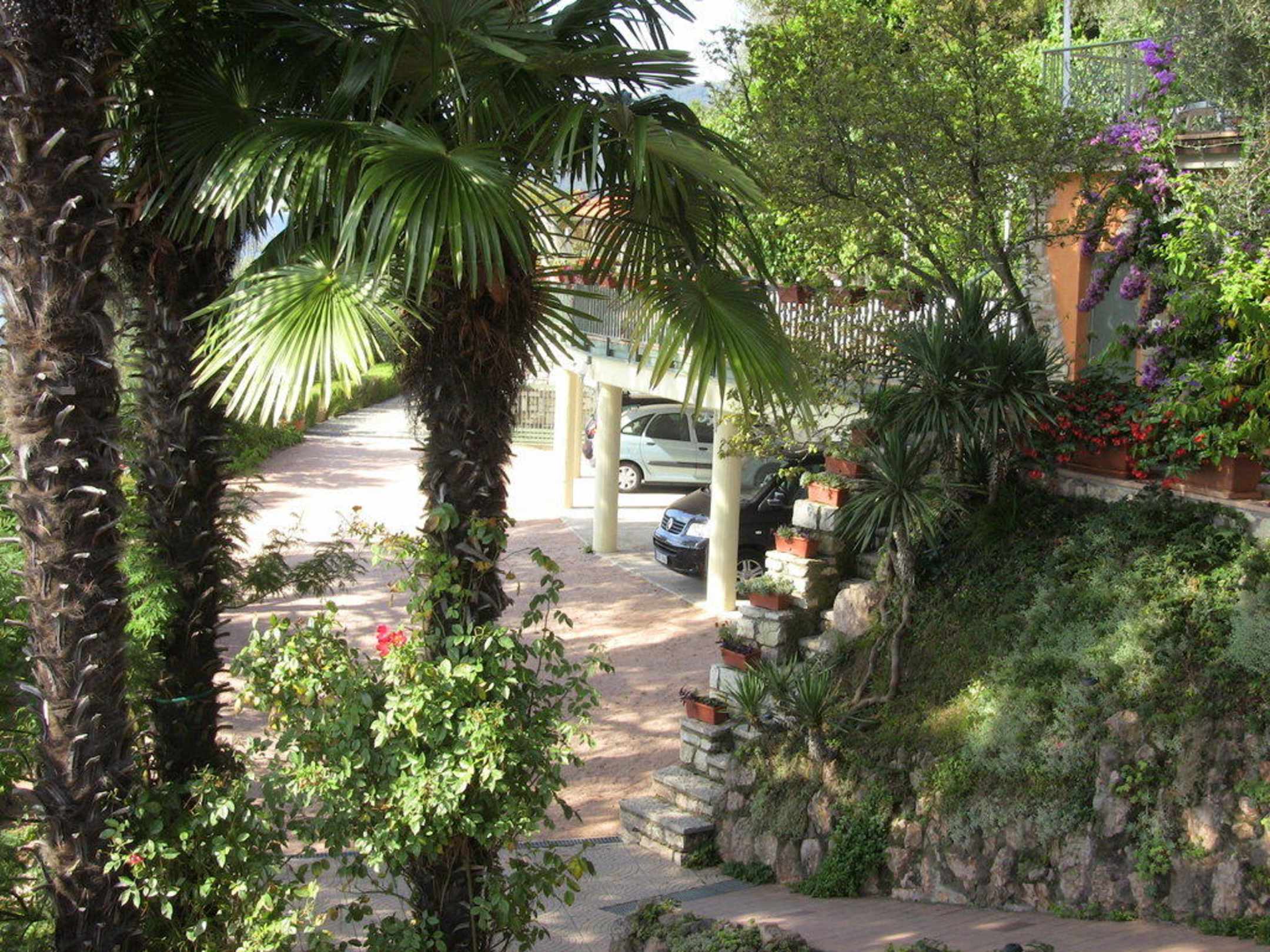 Garten mit überdachtem Parkplatz