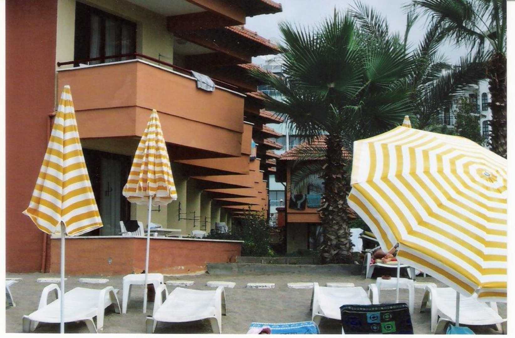 Hotelstrand und Blick auf die Balkons