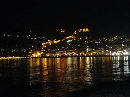 Blick vom Hotelstrand auf den Hafen und Burgberg