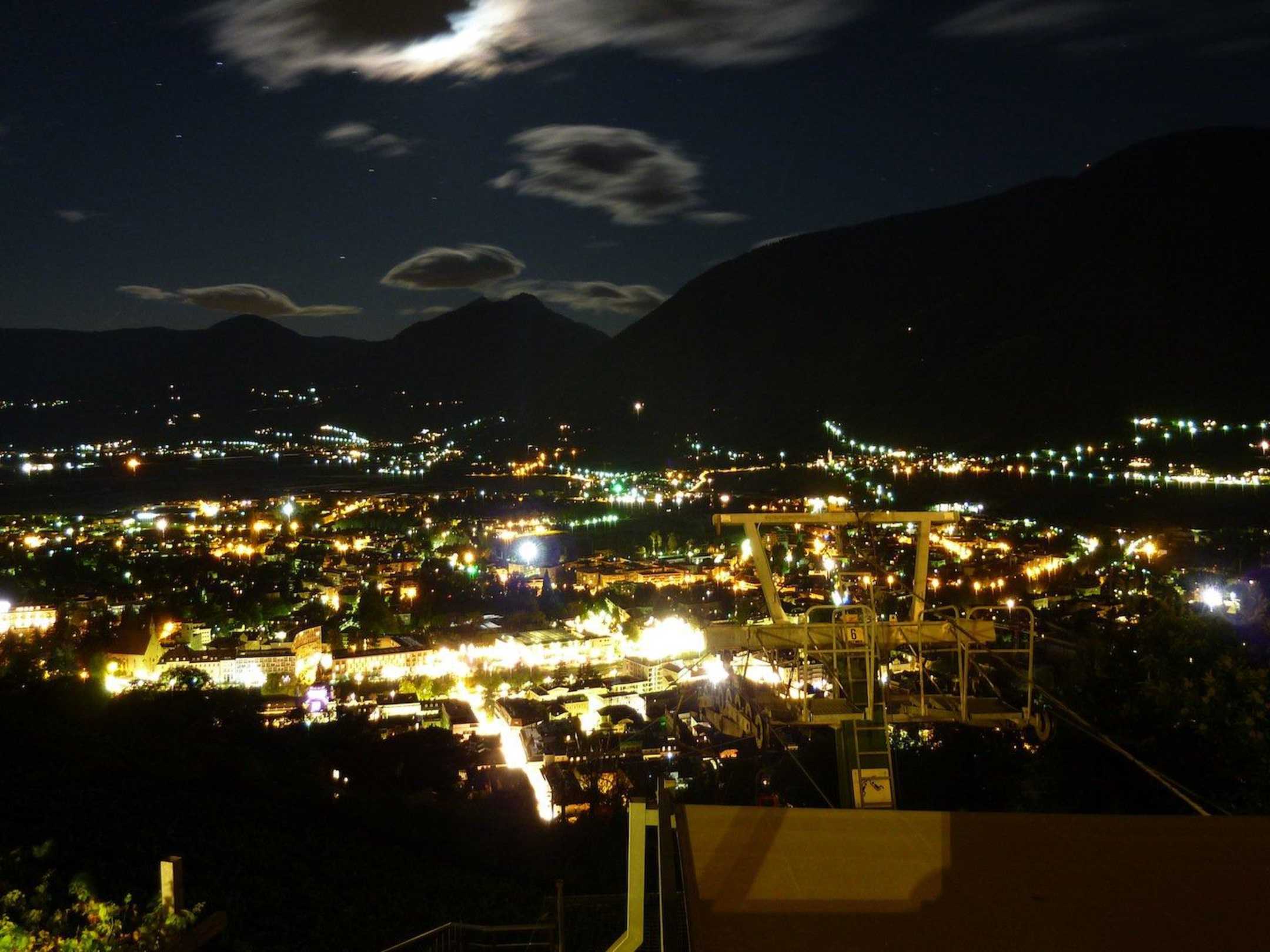 Ausblick vom Balkon auf Meran bei Nacht