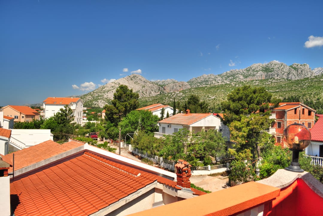 Balkon um die Ecke mit Blick auf das Velebit Gebirge mit Paklenica Schlucht