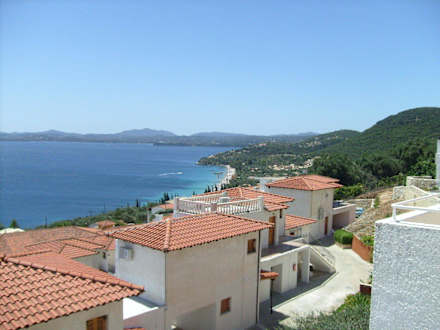 Blick vom Balkon über die Anlage bis zum Strand von Barbati