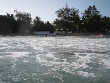 Blick vom Meer auf Hotelzugang