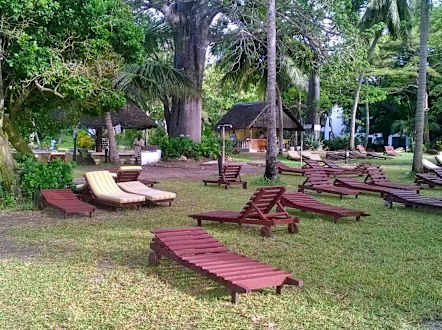 Liegewiese mit Bar und Auflagenhäuschen unter Baobab.