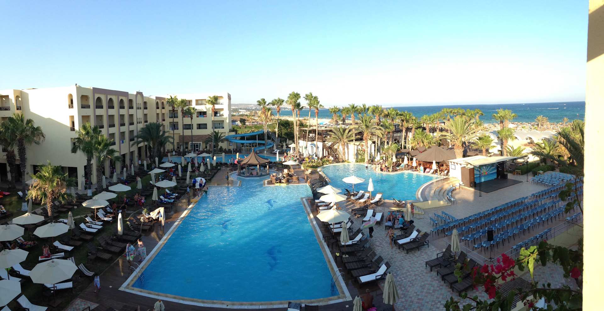Poolanlage am Abend