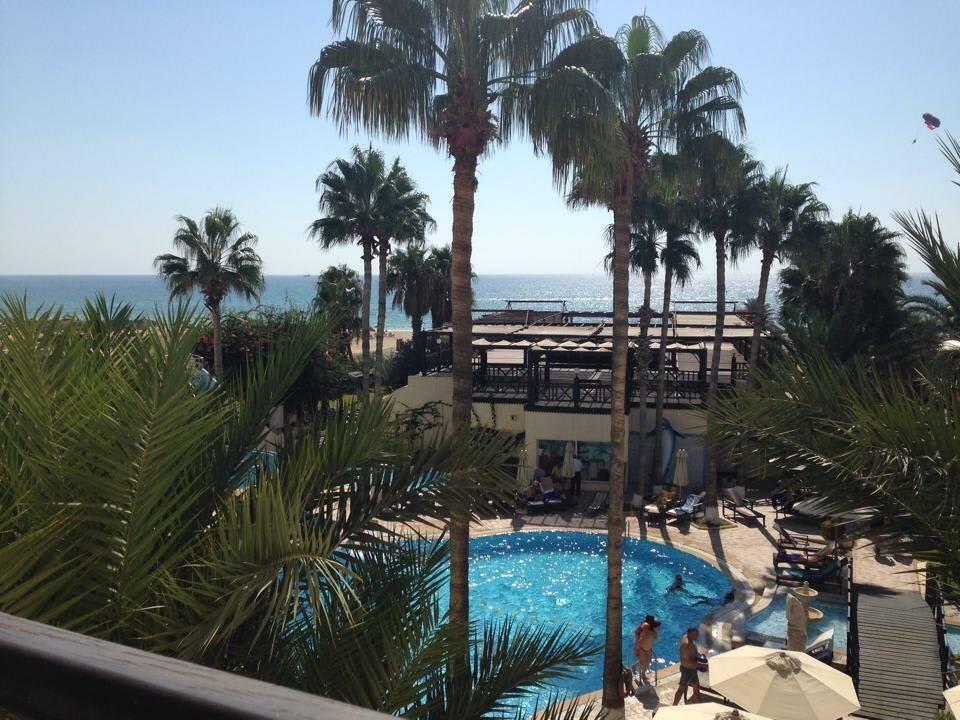 Blick vom Zimmer zum Pool