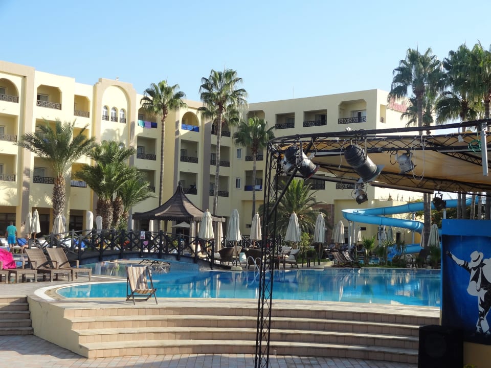 Blick vom Animations-Theater auf den Pool