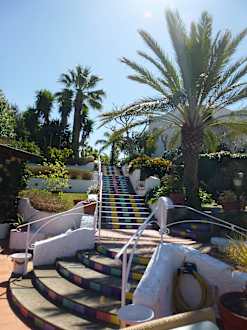 Treppe vom Haupthaus zur Poolanlage und zum Restau