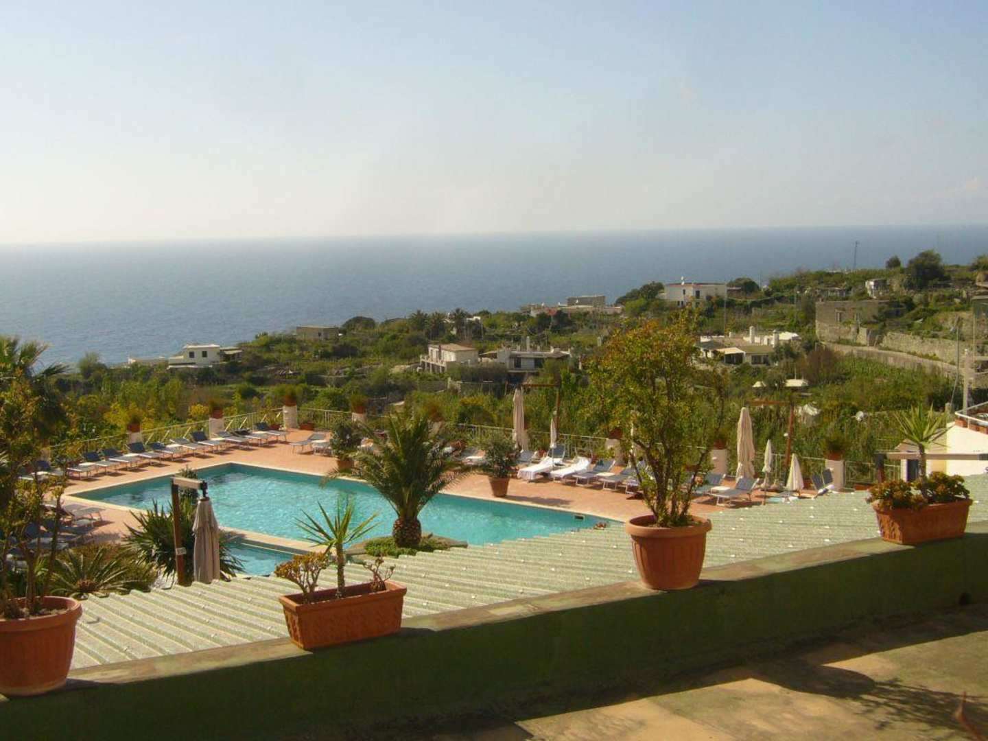Blick vom Garten auf den Pool