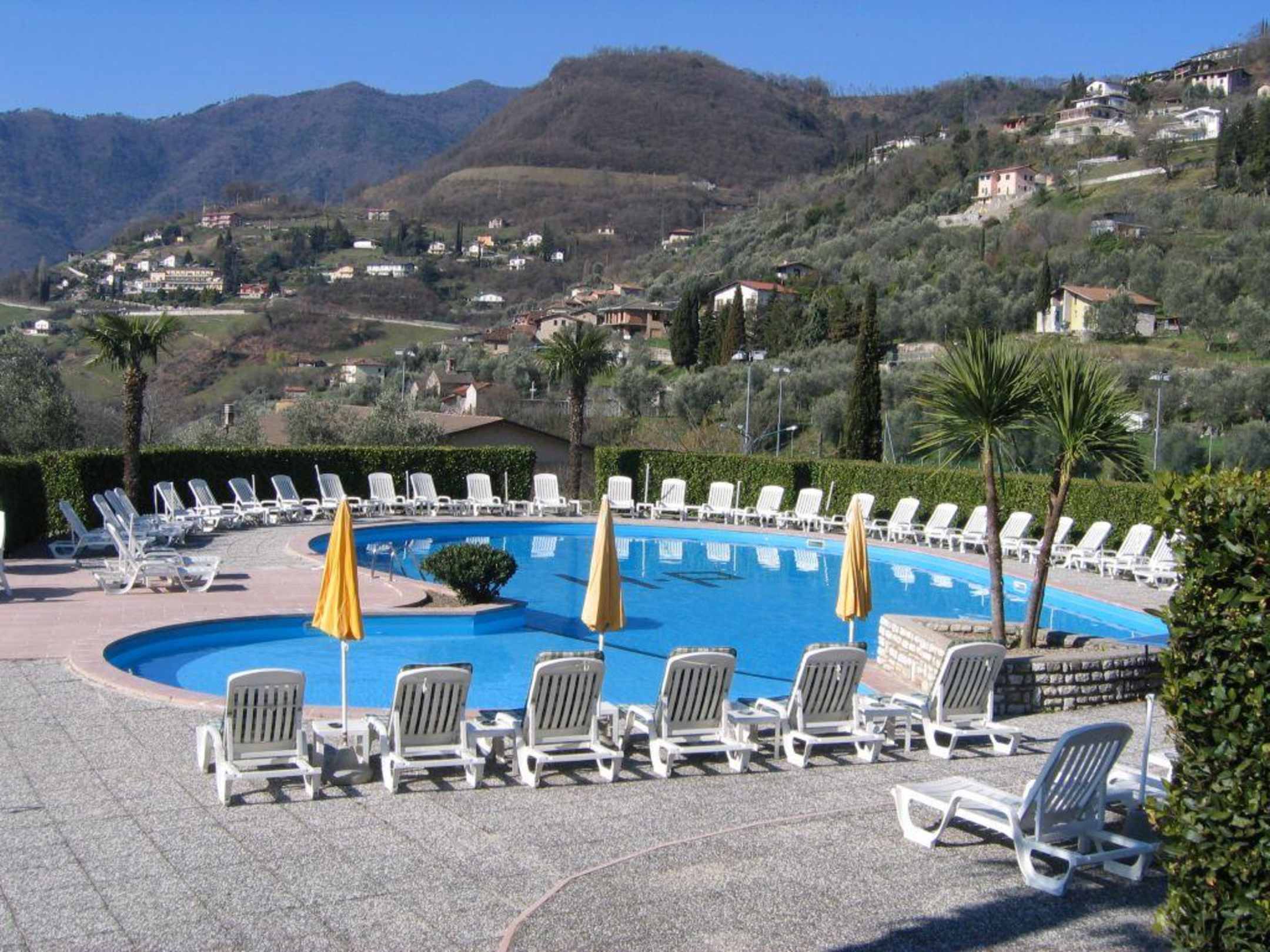 Pool mit Pieve im Hintergrund