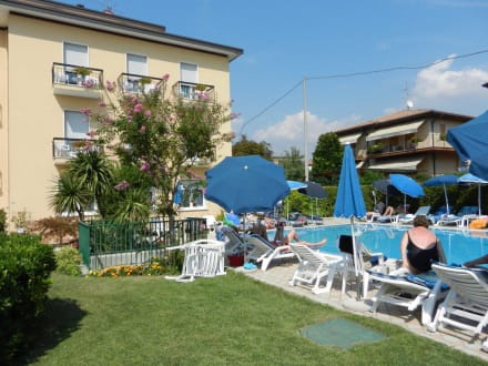 Hotel mit kleiner Grünfläche und Poolbereich