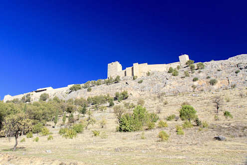 Blick von der Zufahrtsstraße hinauf zum Hotel