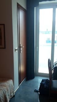 Tür links führt ins Badezimmer, geradeaus Balkon