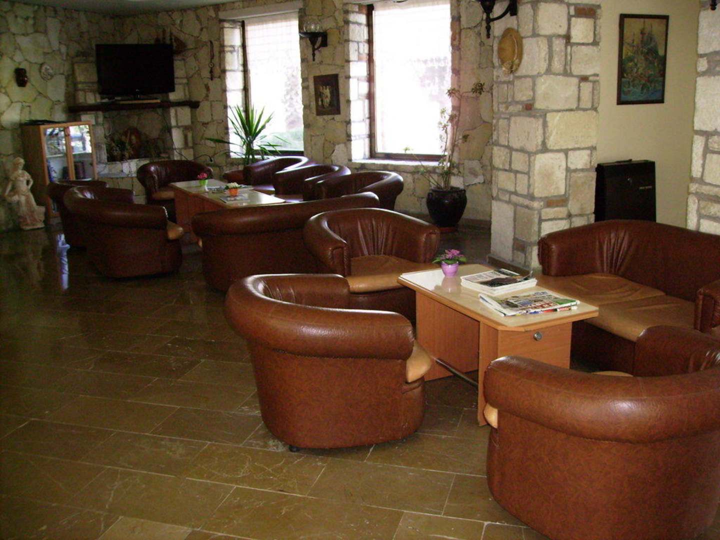 Lobby mit großem Flachbild-TV.