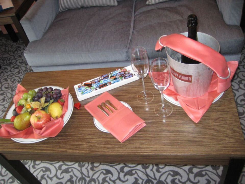 Obst und Sekt im Zimmer