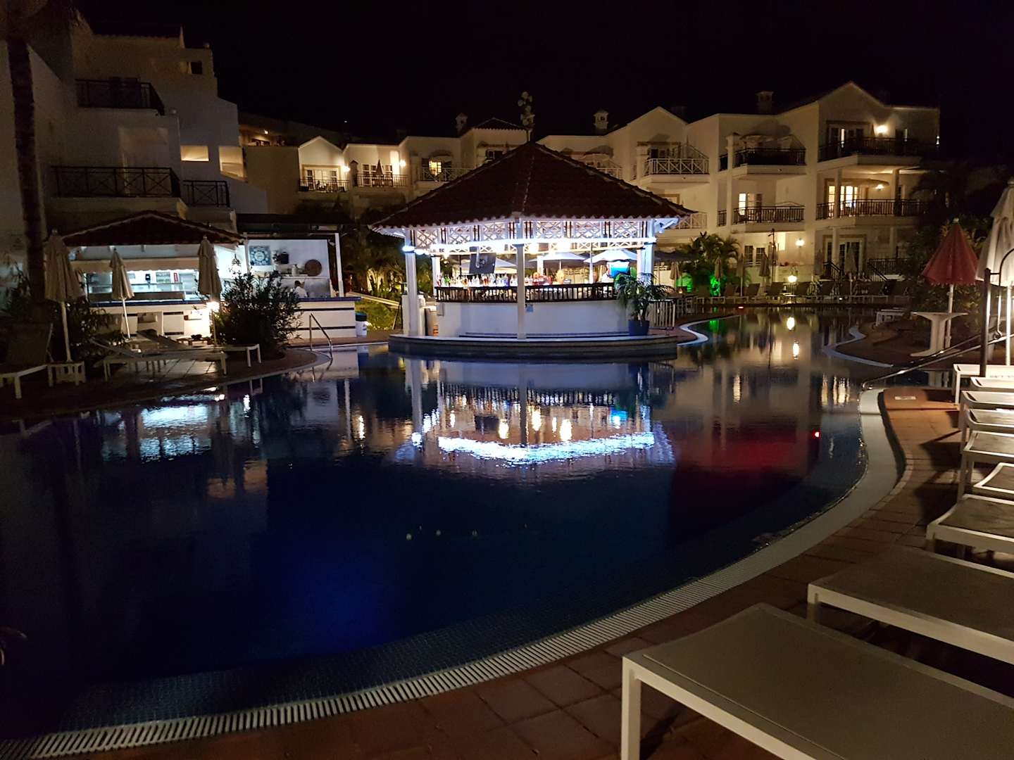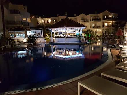 Abendansicht Pool mit Poolbar.