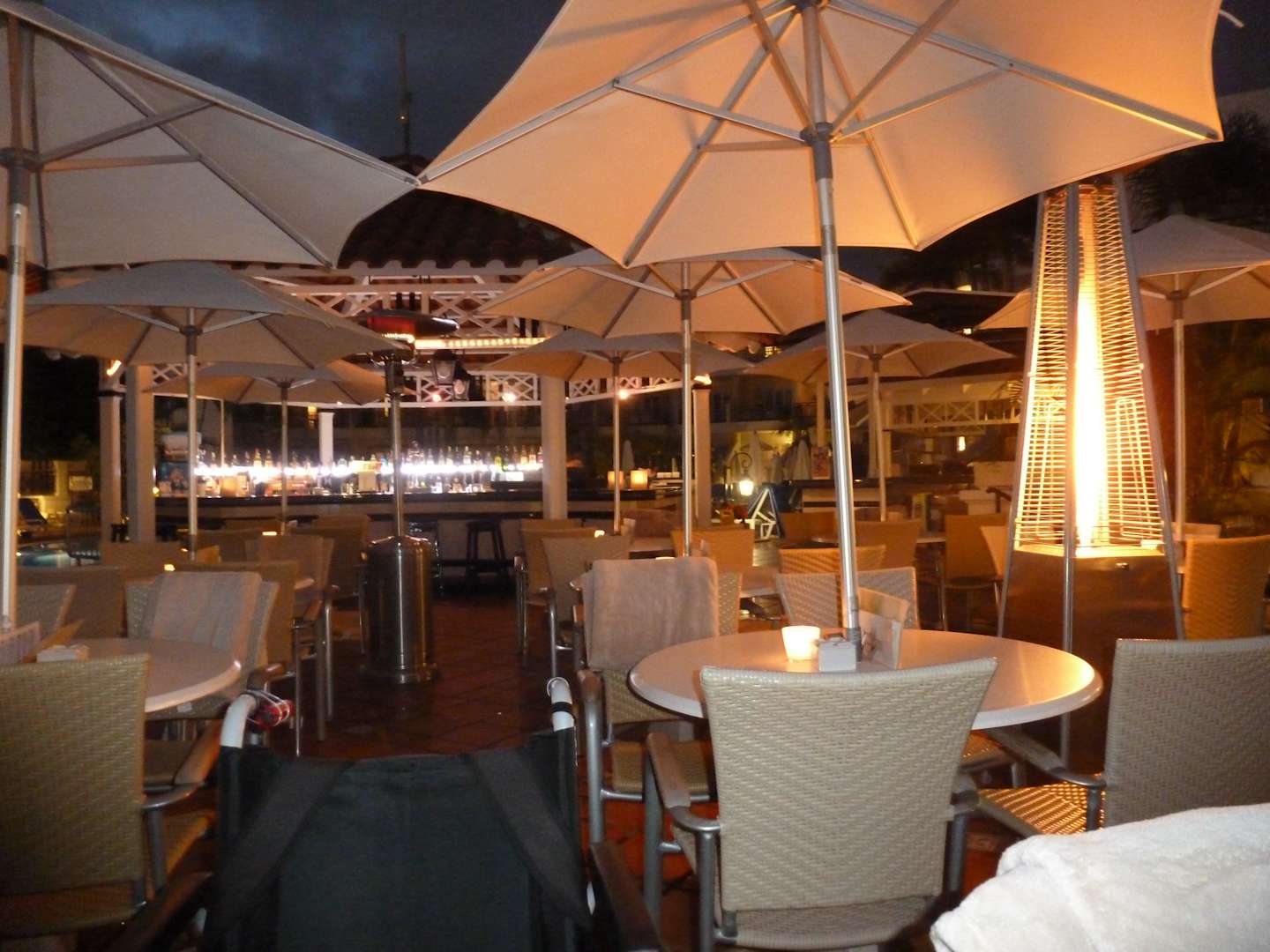 In den Abendstunden lässt es sich mollig warm an der Poolbar gut aushalten. Sobald die Sonne abtaucht, ist man froh über die angenehme Wärme. Zudem sehr gemütlich!