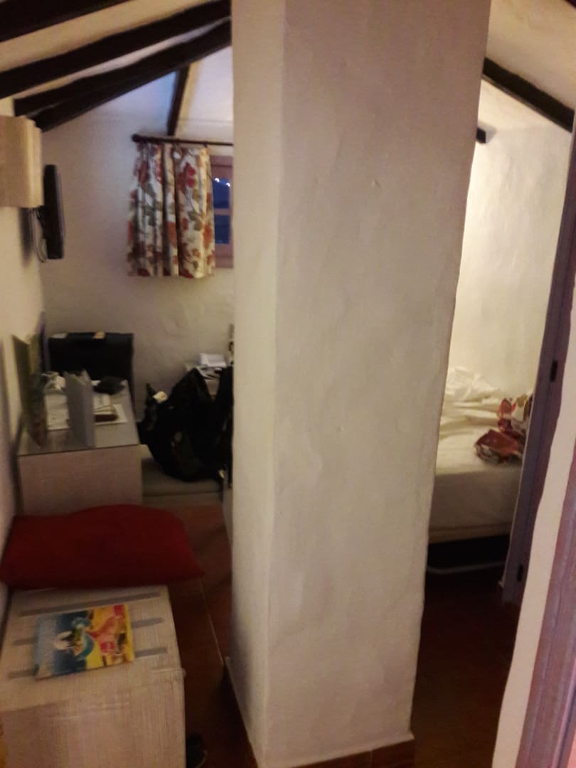 Einzelzimmer im Haupthaus mit Säule in der Mitte.