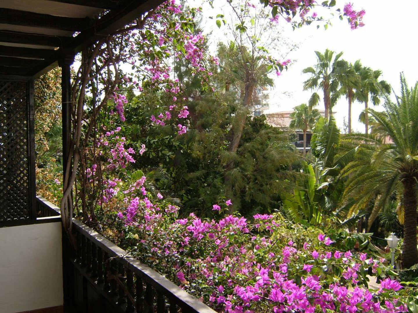 Aussicht vom Balkon Richtung Garten/Poollandschaft