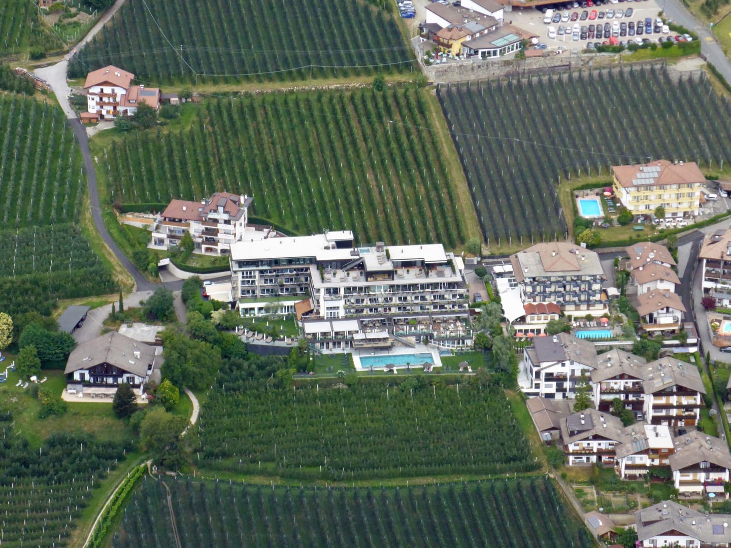 Das Hotel vom Gleitschirm aus.
