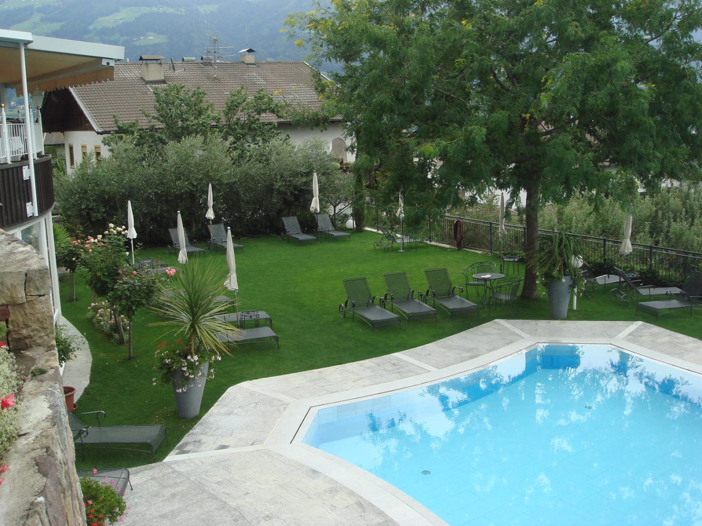 Blick auf den Pool und auf den Garten
